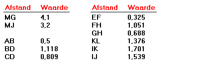 inkepingen (MG en MJ). De afstanden tussen de inkepingen zijn niet