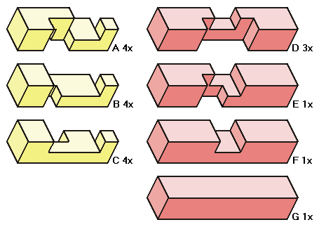 maken door eerst de vier delen op de juiste plaats te zetten en daarna de zes